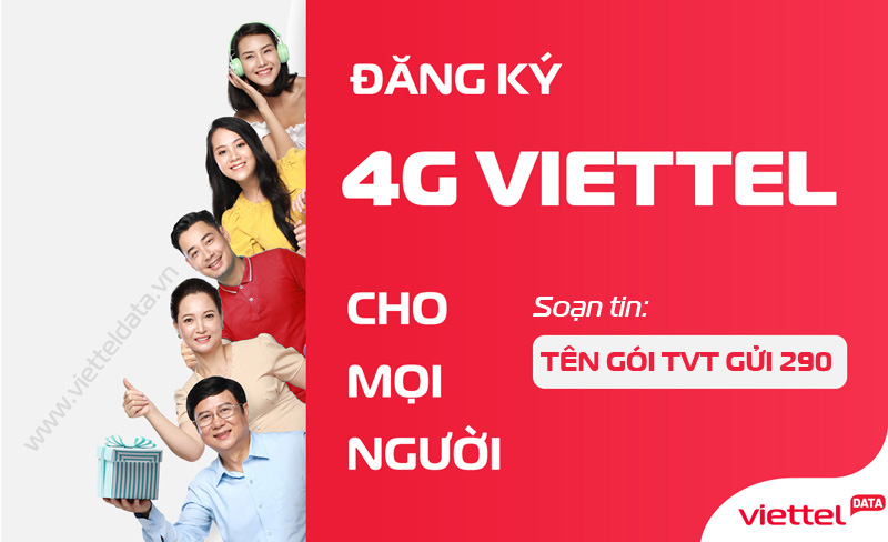 Cách đăng ký 4G Viettel tháng trên Viettel Data như sau: Soạn tin Tên Gói Cước TVT Gửi 290 (hoặc bấm nút đăng ký tương ứng từng gói trên web).